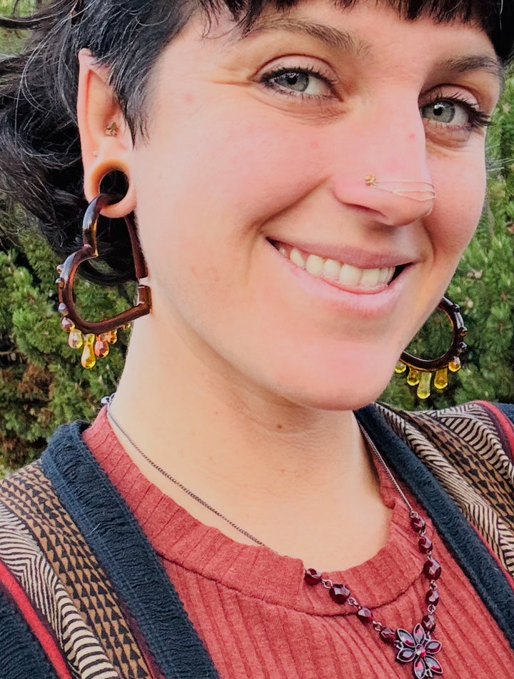 CARE: Before inserting the jewelry in your ears, wash gently with soap and water. Always make sure your hands are clean before handling your piercings. To reduce opportunities for breakage, it is suggested to take the jewelry out before showering, sleeping, and roughhousing :) Be very careful when styling hair, and use a snag free pillow if you need to keep the jewelry in at night. When removing jewelry, do so over a towel or a soft surface in case they fall. Please contact me if you have any specific questions.