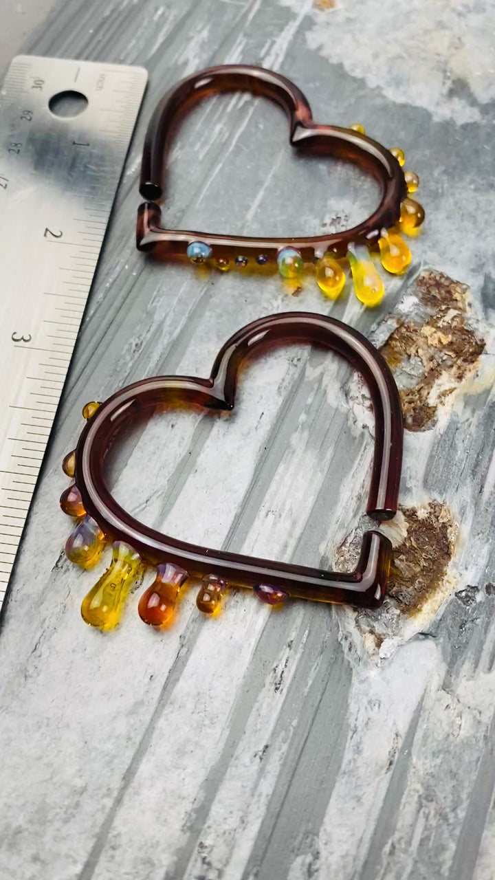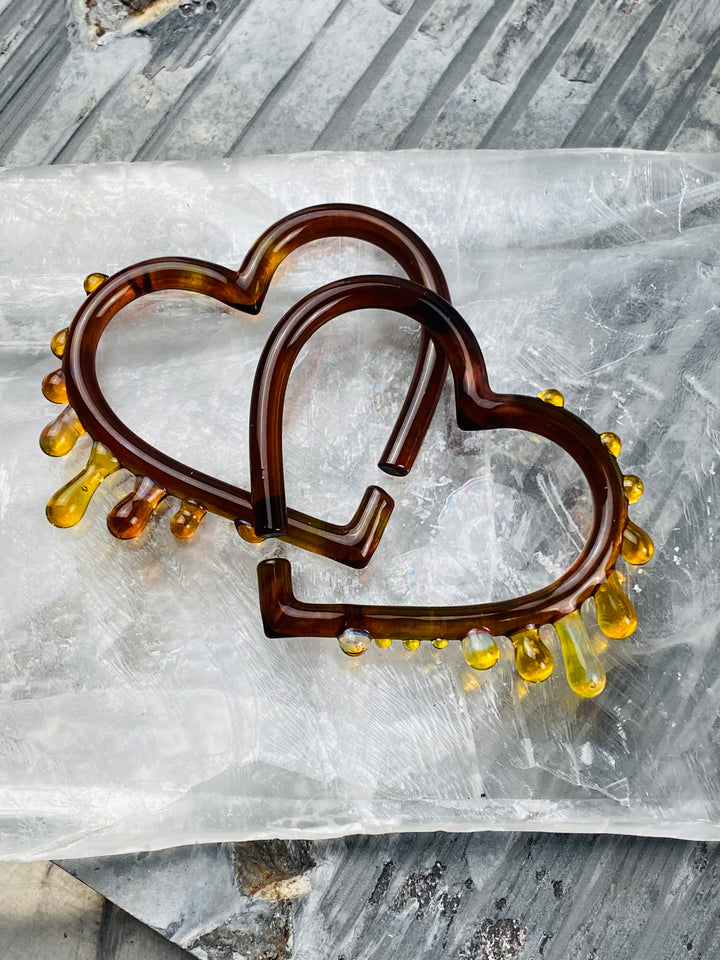 MADE TO ORDER | 2-4 WEEKS*  Honey Drip | Large Glass Hearts | 10G - 0G [ Pair shown is a 4G ] These are hand-formed out of borosilicate glass with the...